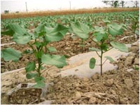2、田間管理:及時放苗,間苗和定苗 覆蓋棉花,合理追肥,適時澆水,中耕除草,合理整枝,棉花整枝一定要精細(xì)。在花蕾期、幼果期、桃果膨大期要噴施棉花壯蒂靈可控制抽條瘋長,促使棉樹生長機(jī)能向生殖機(jī)能轉(zhuǎn)化,使棉桃營養(yǎng)輸送導(dǎo)管變粗,提高棉桃膨大活力,提高抗性,保蕾、保鈴、保桃,加快棉樹循環(huán)現(xiàn)蕾,循環(huán)吐絮,提高纖維質(zhì)量。