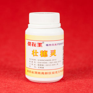 壯穗靈膠囊:每瓶60粒。在50--80公斤水中加本膠囊1粒,可提高農(nóng)作物受粉、受精、灌漿質(zhì)量,增加千粒重。適用于玉米、麥子、水稻、芝麻、高粱、向日葵、油菜、燕麥、蕎麥、谷子、薏米等穗屬作物。本品PH值中性,遵照使用要求稀釋后噴霧,亦可以和各種農(nóng)藥及葉肥混合使用。稀釋液存放保質(zhì)期30天。